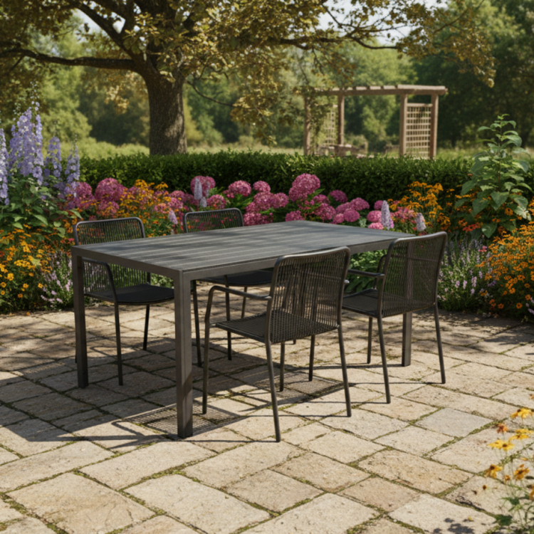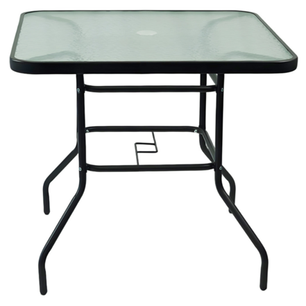 Záhradný stôl, čierna oceľ/tvrdené sklo, FRENY