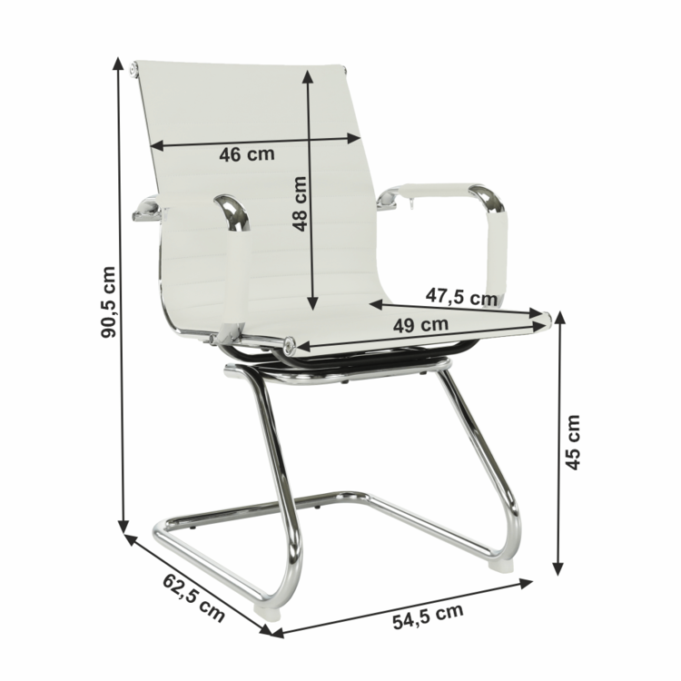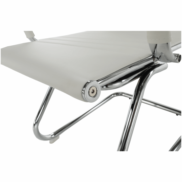 Položená je na chrómovanej základni a potiahnutá je kvalitnou ekokožou. Tento materiál je praktický pre každodenné použitie. Ekokoža je obľúbená pre svoju odolnosť, príjemný povrch a vzhľad, podobajúci sa pravej koži. Stolička disponuje ergonomicky tvarovaným operadlom a pevnými opierkami s mäkkou hornou hranou, ktoré zaisťujú väčší komfort pri sedení.