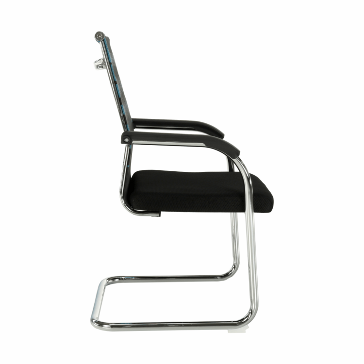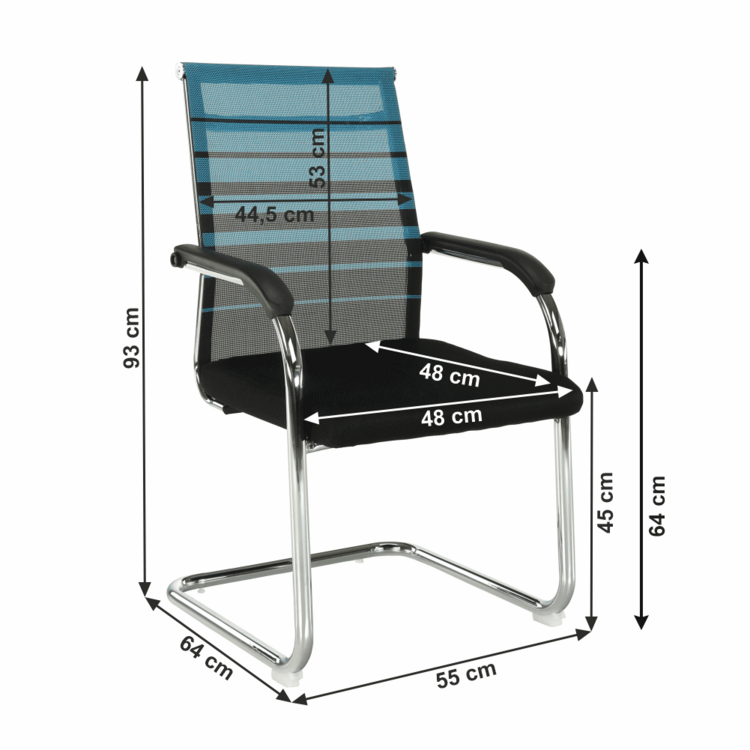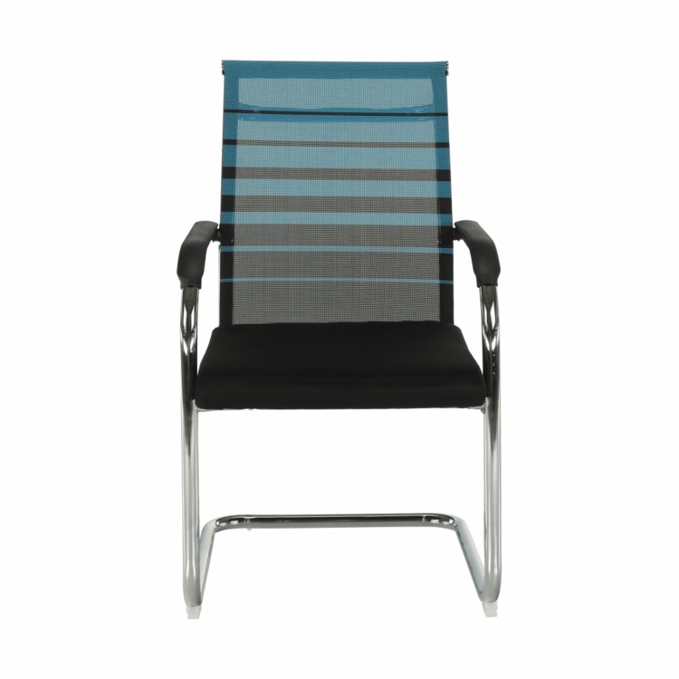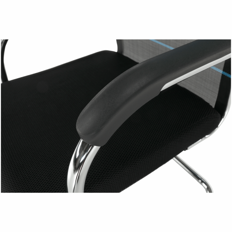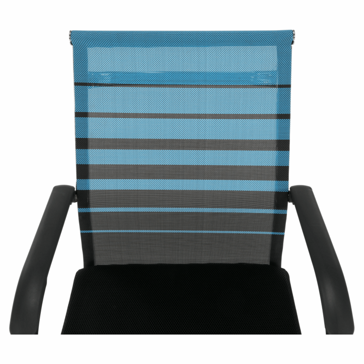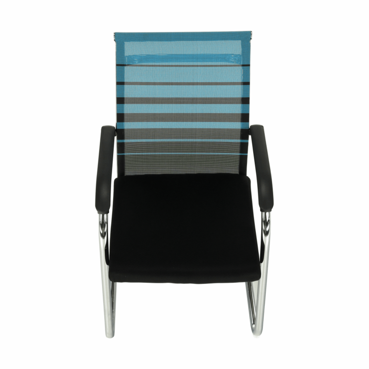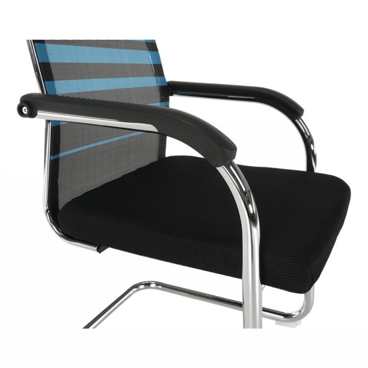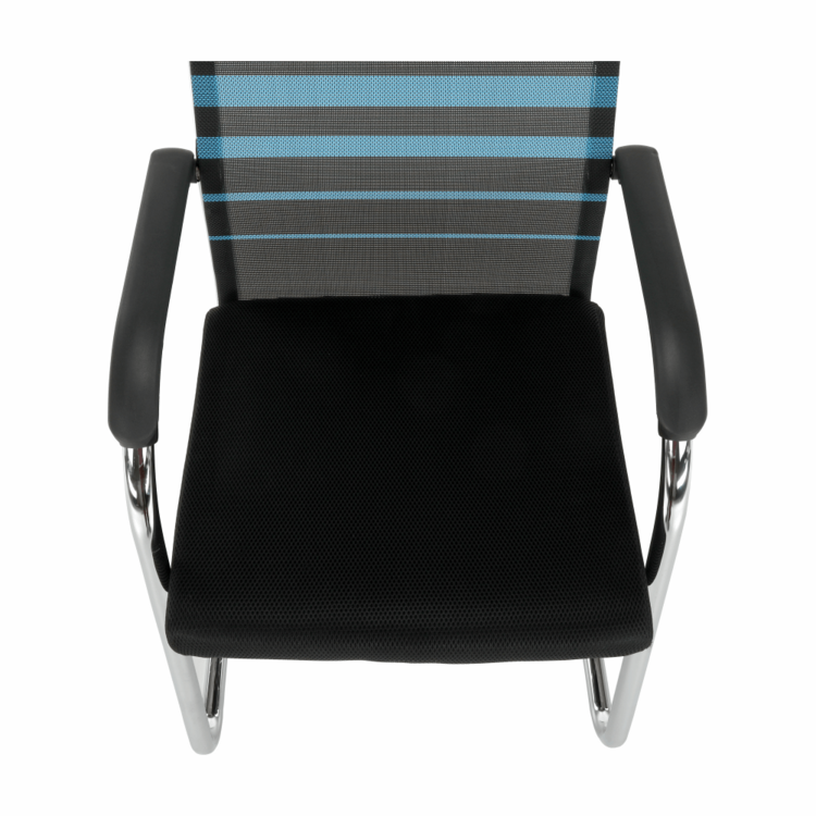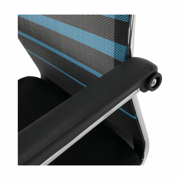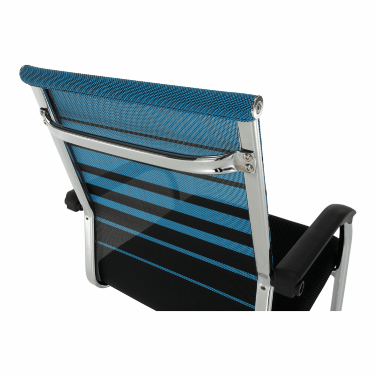 Konštrukciu tvorí pevný kov v striebornej farbe. Pre sedadlo bola zvolená čierna sieťovina, pre operadlo modrá s čiernymi pásmi. Čierna a modrá, to je kombinácia, ktorá je nenásilná, neutrálna a upokojujúca. Pocit z pohodlia zabezpečujú plastové opierky na ruky.
