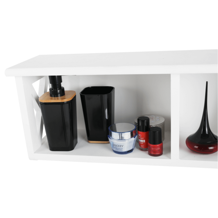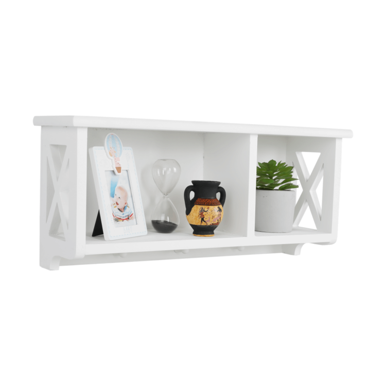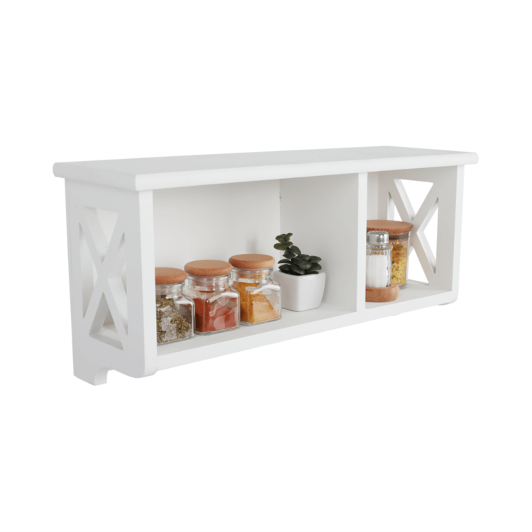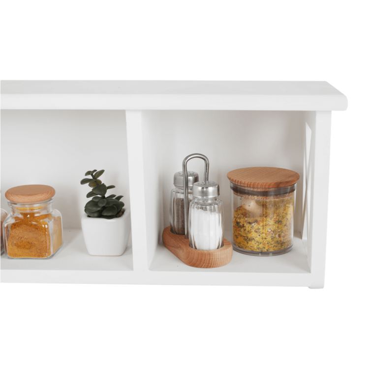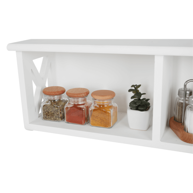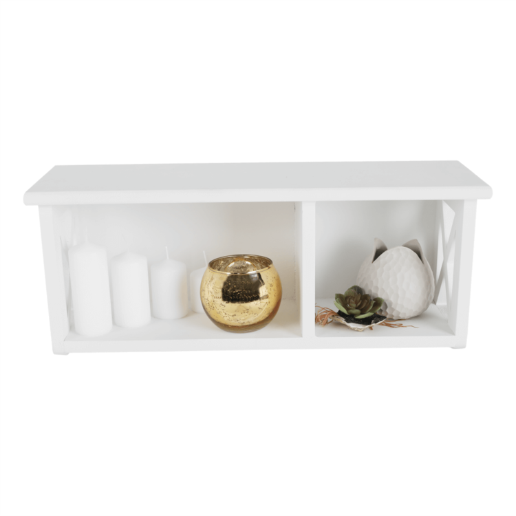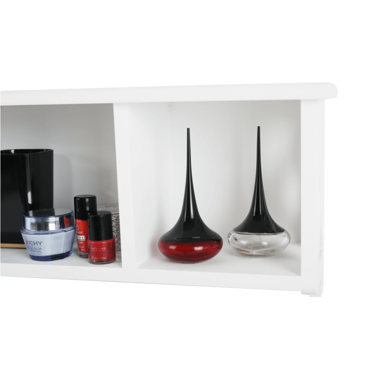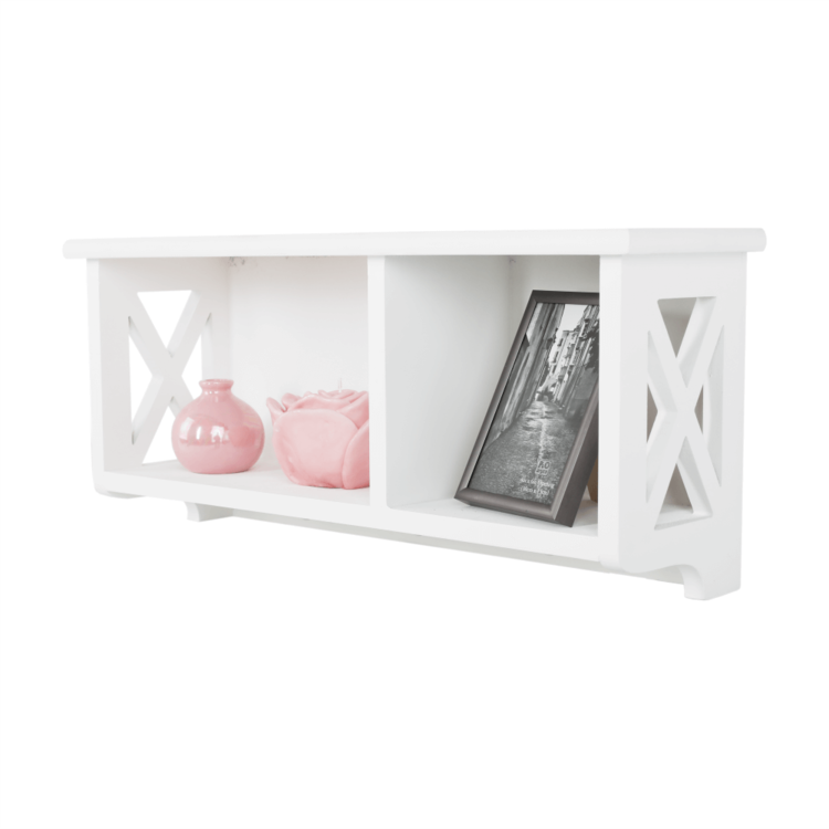Ponúkame vám závesnú policu RAFAELLO ideálnu na skladovanie a triedenie rôznych predmetov. Je to krásny doplnok do vašej predsiene, spálne či kúpeľne. Vyrobená je z masívneho dreva vo farebnom prevedení biela. Skladá sa z pevného rámu a otvoreného úložného priestoru.