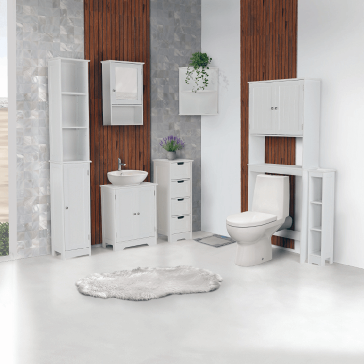 Je jednodverová s otvoreným odkladacím priestorom, ktorý poslúži na odloženie čohokoľvek. V skrinke nájdete jednu poličku, na ktorú hravo uložíte hygienické potreby, šampóny alebo aj čistiace prostriedky.