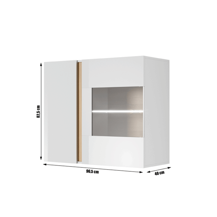 Závesná vitrína 96 je s 2 dvierkami. Ak hľadáte úložný priestor, ktorý by bol navyše v modernom dizajne, táto vitrína je pre vás tá pravá. Ponúka ukladací priestor v podobe 2 políc, jedna polica je sklená.