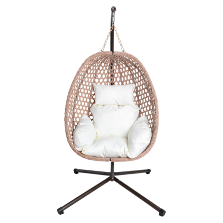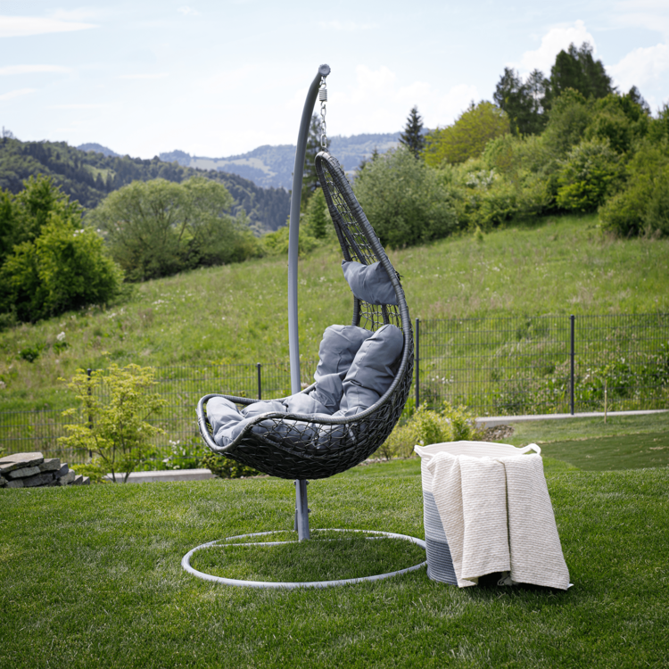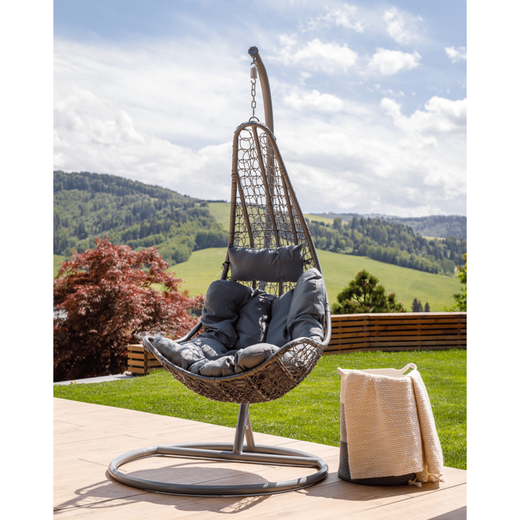 Závesné kreslo KALEA je vhodné na umiestnenie do exteriérov aj interiérov. Pevný oceľový rám zaisťuje perfektnú stabilitu. Samotné kreslo je vyrobené z umelého ratanu, ktorý je pevný, pružný a odolný voči poveternostným podmienkam. Komfort zabezpečuje pohodlný veľký vankúš. Celkový vzhľad kresla pôsobí prírodne a výborne dotvára atmosféru záhrad, balkónov či terás.