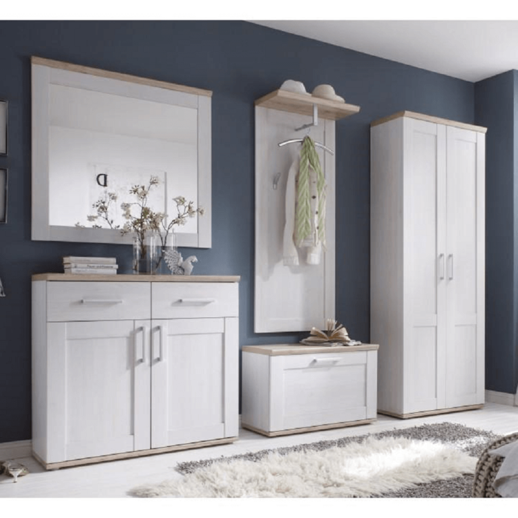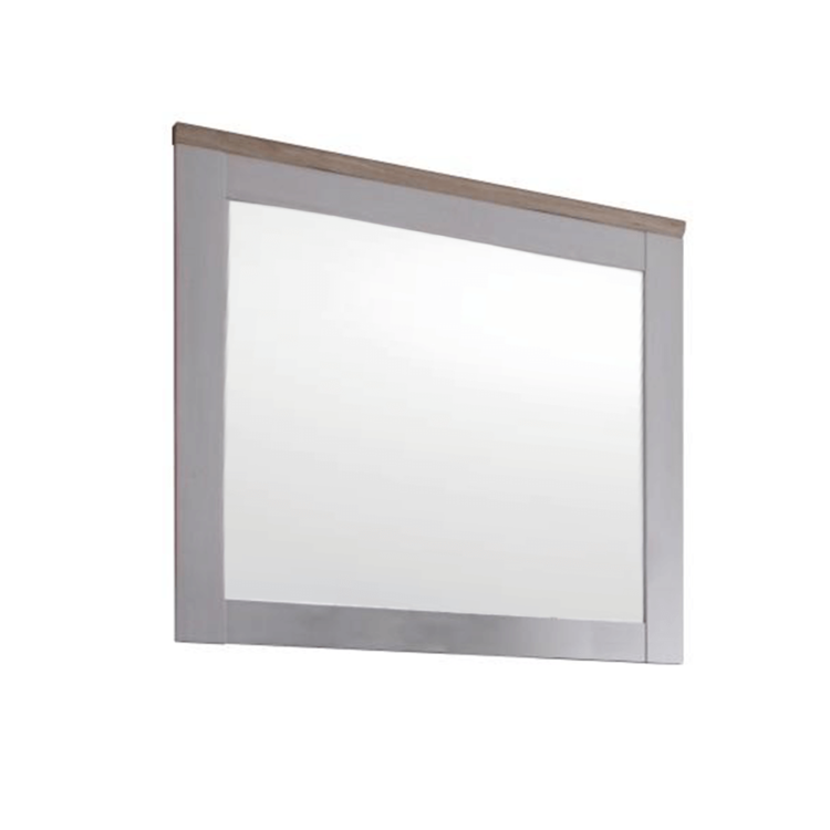 Zrkadlo z predsieňovej sektorovej zostavy PROVENSAL. Jednoduché tvary ponorené v čistej bielej farbe, pričom vrchný a spodný diel sú v prevedení dub San Remo. Materiál je kvalitná fóliovaná drevotrieska.