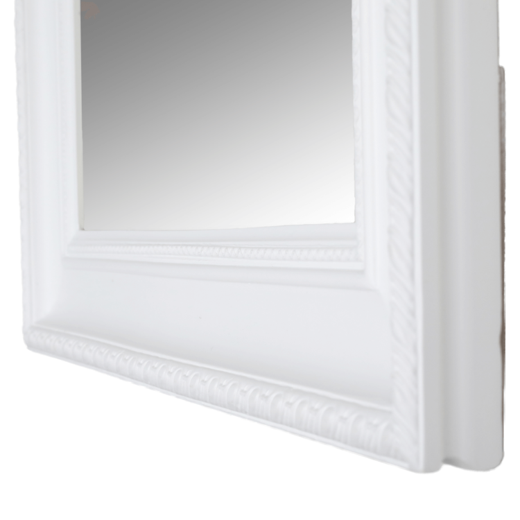Zrkadlo MALKIA TYP 2 s dreveným rámom v bielej farbe.